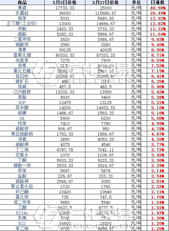 大宗商品的高價暴漲,國家的“穩價”措施不斷落實,“六穩六保”實行、承兌匯票縮短兌換期,各類囤積居奇、惡意炒漲的行為被盯上了,大宗原料市場價格波動不斷。 漲得有多猛,跌得就有多慘! 國務院:承兌匯票承兌期限縮短至6個月! 據中國政府網顯示,李克強總理在國務院會議上談及支持小微企業發展,其中提到為了支持小微企業,落實減稅降費措施,研究將承兌匯票期限縮短至6個月,減輕企業負擔。  *來源:中國政府網 近年來,承兌匯票的新聞層出不窮,被承兌匯票“禍害”的企業數不勝數。國家不斷出手完善應對措施。本次擬將承兌期限縮短至6個月,對小微企業而言,是一個向好發展的訊號。 除了提及縮短承兌期限,各項“穩價”舉措是本次會議的亮點,強調做好上下游穩定原料供銷協作,打擊囤積居奇、哄抬價格的行為,同時推進反壟斷、反不正當競爭執法。想要炒漲,怕是難上加難咯。 國家三次發聲,大宗市場三次暴跌! 5月以來,化工大宗連連走跌,穩價保供措施成效初顯。 5月12日 國務院會議要求分析市場做好市場調節,應對大宗商品快速上漲,加強貨幣政策保證平穩運行。 5月19日 國務院部署保價穩供工作,市場監管介入及政策實施遏制價格不合理上漲,大宗市場跌勢初現。 5月26日 國務院部署小微企業發展措施,強調打擊囤積居奇、哄抬物價,要求強化反壟斷、反不正當競爭執法,大量原料價格繼續回調。 自5月初至今,化工大宗漲跌榜顯示: 上漲的大宗化工有49種,其中上漲前三位為:黃磷(40.98%)、多晶硅(20.49%)、粗苯(12.92%); 下跌的化工大宗共有37種,其中跌幅榜前三位為:丙酮(-29.70%)、三聚氰胺(-24.34%)、異丙醇(-22.66%)。