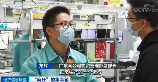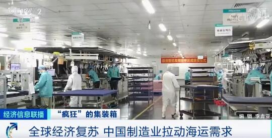 中集集團董事長麥伯良:在全球運營的集裝箱4000多萬個,我們一個月生產40萬個,那一年也就生產500萬個,箱子回不來,你還是解決不了根本問題。 全球經濟復蘇中國制造業拉動海運需求 這撥海運行業的漲價潮,受多重因素影響,比如,海外嚴峻的疫情、蘇伊士運河的阻塞,都讓海運行業壓力倍增。 廣州一家家電企業的智能車間里,工人們開足馬力,趕制發往歐美的電視機。如今企業的出口訂單已經排到兩個月后,但企業物流的負責人卻高興不起來。