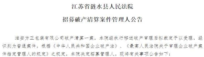 現(xiàn)金流雄厚,并在原材料料采購環(huán)節(jié)具備一定議價能力的上市公司尚且如此,行業(yè)中小包裝企業(yè)的痛苦就可想而知了。在原材料大幅上漲的背景下,一些擴張過快,資金儲備不足的企業(yè)紛紛倒下。 6月21日,東蘇省漣水縣人民法院發(fā)布淮安方正包裝有限公司破產(chǎn)清算案招募管理人公告。