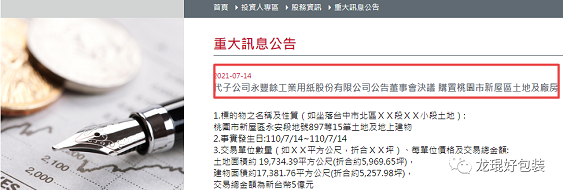 近日,永豐余投控發布公告稱,旗下永豐余工業用紙股份有限公司為擴充紙器產能,決定購置蘋果日報位于桃園新屋的印刷廠,以5億元買下約5969.65坪土地及約5257.98坪建筑物。目前,雙方已完成買賣契約簽署,未來規劃建置的新紙器產能仍在研議中。