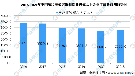 近年來(lái)隨著現(xiàn)代商業(yè)、物流產(chǎn)業(yè)的快速發(fā)展,印刷包裝行業(yè)在全球范圍持續(xù)、穩(wěn)定增長(zhǎng)。隨著生產(chǎn)工藝、技術(shù)水平的提升以及綠色環(huán)保概念的普及,紙制印刷包裝物因具有生產(chǎn)原料來(lái)源廣泛、成本低、便于物流運(yùn)輸、易于儲(chǔ)存和包裝物可回收等優(yōu)勢(shì),已經(jīng)可以部分取代塑料包裝、金屬包裝、玻璃包裝等多種包裝形式,應(yīng)用范圍越來(lái)越廣。 市場(chǎng)規(guī)模 數(shù)據(jù)顯示,2019年我國(guó)紙和紙板容器制造業(yè)規(guī)模以上企業(yè)主營(yíng)業(yè)務(wù)收入達(dá)2897.2億元。 中商產(chǎn)業(yè)研究院預(yù)測(cè),2021年我國(guó)紙和紙板容器制造業(yè)規(guī)模以上企業(yè)主營(yíng)業(yè)務(wù)收入可達(dá)2785.6億元。