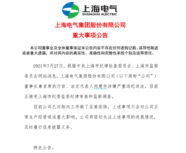 A股600億市值的上市公司,上海電氣,又出大事了。剛剛公告,50歲的執(zhí)行董事兼總裁,5日不幸逝世。 5日晚間,上海電氣發(fā)布公告稱,公司執(zhí)行董事兼總裁黃甌先生于2021年8月5日不幸逝世。黃甌先生在公司任職期間,為公司的發(fā)展付出了辛勤的努力,做出了重要的貢獻(xiàn)。公司對黃甌先生的不幸逝世表示沉痛的哀悼,并向黃甌先生的家屬致以深切的慰問。 目前公司的生產(chǎn)經(jīng)營情況正常。