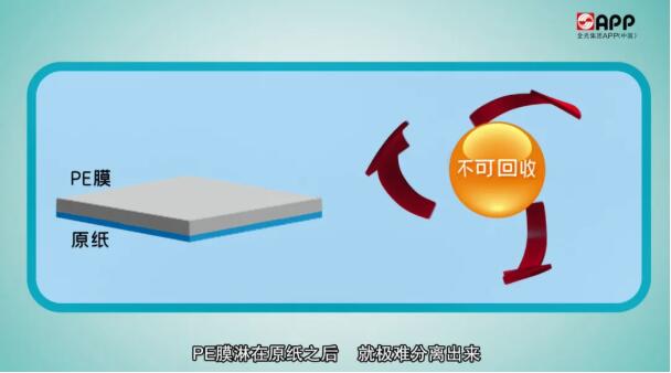 02、小小薄膜束縛著我 每年只有不到1%的紙杯能被回收的原因就在于:PE淋膜紙。這是目前市場(chǎng)上紙杯采用的主流解決方案。簡(jiǎn)單地說(shuō),它是運(yùn)用淋膜工藝,在原紙上淋一層PE膜,用于隔絕水和原紙,解決了紙杯一浸就濕,一泡就透的問(wèn)題,從而可以裝各種各樣的食品飲料。 奈何,它有個(gè)致命缺點(diǎn):PE淋膜與原紙極難分離,從而導(dǎo)致回收利用極其困難。更糟糕的是,PE淋膜還不可降解……