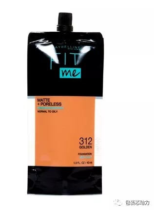 Glenroy可持續包裝產品組合均采用可回收薄膜復合袋,如滿足How2Recycle商店下架標簽計劃要求的、消費后可回收(PCR)薄膜復合袋,其中薄膜回收率高達53%,以及采用消費后可回收塑料制成的環保友好型立式袋,可回收的成分高達48%。 美寶蓮FitMe®Matte+無孔粉底包裝袋 美寶蓮的FitMe®Matte+Poreless針對電子商務包裝構想了一種新的方案,將其與傳統的硬質玻璃瓶搭配使用。該包裝是在形狀上更迷你、在功能上更強的旅行袋,適合電子商務零售。