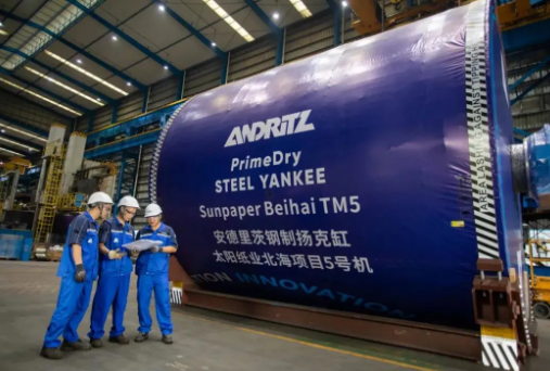 8月17日,安德里茨成功將一臺18英尺PrimeDry鋼制揚克缸發往廣西太陽紙業北海基地車間。 據悉,PrimeDry鋼制揚克缸是安德里茨將為太陽紙業北海基地提供兩臺PrimeLineTMW2000紙機的一部分。該紙機設計車速為2000米/分鐘,幅寬為5.65米,均配備大型的真空壓榨輥、帶端蓋保溫的PrimeDry鋼制揚克缸和再蒸發系統。安德里茨的供貨范圍還包括FibreSolveFSV碎漿機、流送系統、損紙處理和纖維回收及自動化系統(QCS和DCS)。