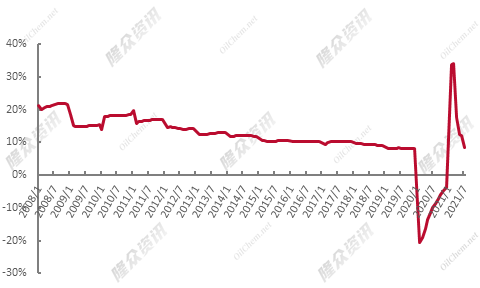 1-8月份瓦楞紙價格呈現“V”字型走勢。5月上旬開始瓦楞紙價格呈現穩中小幅上揚態勢,8月份瓦楞紙漲幅進一步擴大。8月份瓦楞紙全國均價為4101元/噸,同比去年的3522元/噸上漲579元/噸,漲幅16.44%,環比上漲2.08%。但到了8月下旬,瓦楞紙價格卻頻頻出現優惠讓利政策,市場需求進入平淡期。 主要原因分析 1、公共衛生事件反復及極端天氣對國內市場有較大影響 7、8月份國內多地區公共衛生事件頻繁發生,截至8月下旬,云南、江蘇、河南、湖南、湖北、上海及北京仍處于高、中風險地區,人們出行及交通均受到一定的影響,公共場所消費及旅游消費影響較大,內需景氣度不高。 今年河南、湖北、四川、陜西等地受臺風暴雨天氣影響,出現洪澇災害,當地經濟活動受到影響,除部分救援物資外,其它日常商品需求下降。 社會零售商品總額同比變化圖↓