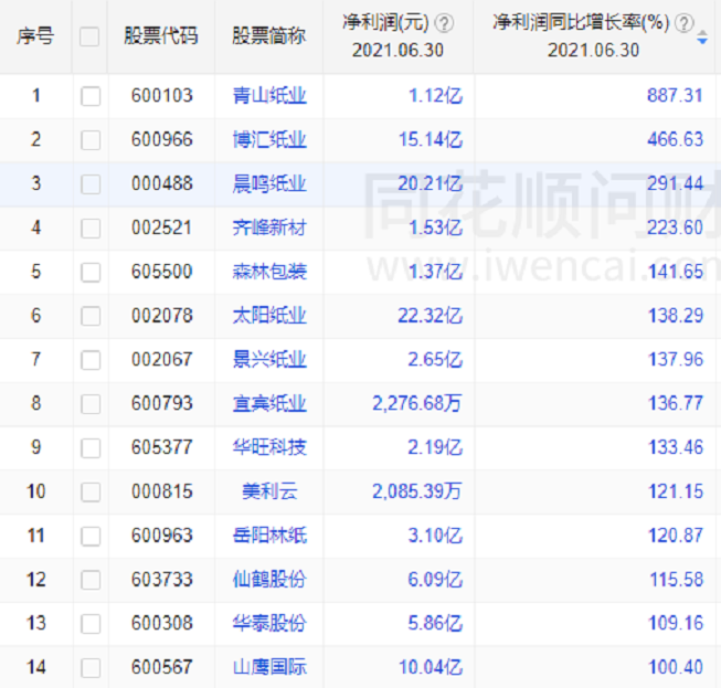 在盈利增速方面,21家凈利潤實現正增長,其中凈利潤同比增長超過100%的有14家,青山紙業增幅最大,同比上升887.31%。  一些結論 造紙行業景氣度回升利好企業 造紙關乎國計民生,與宏觀經濟環境關系密切。造紙企業們交出了滿意的答卷,很大程度上得益于行業景氣度整體復蘇的大背景。2021年上半年,隨著國內疫情得到控制,宏觀經濟環境全面復蘇,紙制品作為基本的生產和生活資料的需求也被逐步釋放。據工業和信息化部公布的數據,2021年1-6月,全國造紙及紙制品營業收入7142億元,同比增長24.7%;利潤總額484.3億元,同比增長77.2%。 做大做強產業鏈是發展趨勢 疫情導致上游原料價格增長,行業總體成本提升,這對造紙行業來說都是一個重大考驗。但對于擁有完整產業鏈的企業而言,其成本優勢更容易凸顯。 晨鳴紙業早在二十年前就布局了產業鏈一體化戰略,基于公司430萬噸自制漿的原料成本優勢以及水運、陸運的配套運輸優勢,有效管控成本以確保自身競爭力,例如晨鳴紙業自制木漿成本較一般市場價格要低數百元,總體運輸成本也優于同業;圍繞造紙產業鏈,太陽紙業也進行了多元化布局,目前已經構建起了山東、廣西和老撾三大基地,隨著今年下半年廣西基地紙、漿項目陸續投產,太陽紙業漿、紙產能將超過1000萬噸;而博匯被APP(中國)收購之后,能夠享受到集團林漿紙一體化布局帶來的成本優勢,有效提升紙漿成本優勢和盈利能力。 革新技術和產品方贏先機 從各家紙企的布局看,對于產品和技術的持續革新也為增強公司競爭力貢獻一筆。博匯紙業在上半年緊抓“以白代灰”、“以紙代塑”的政策變化帶來的先機,加大新產品研發和升級,成功開發出高檔食品卡、紙杯原紙、涂布紙杯紙等新產品,同時還開發出防偽煙包、特種銅版卡、高級名片紙、白面牛卡、吸塑紙等新產品滿足特殊客戶差異化需求;晨鳴集團則加快新舊動能轉換步伐,改造升級高端產能,高檔產品比重占到95%以上;太陽紙業為實現產品差異化競爭,正適時調整經營策略,目前在研發方面已構建了較為完善的科技創新體系,并擁有一支專業、高效、技術過硬的科技研發隊伍,公司每年的研發投入占比處于同行前列。 這一輪業績公布,有人喜,卻也有人憂。憂的是,利潤都是別人的。 如上文提到的,無論是深耕產業鏈,還是革新產品和技術,都需要企業有充足的資金流能持續投入,也就是說,非頭部企業而難為?梢韵胍姡诃h保趨嚴、成本上漲的態勢下,缺少話語權的中小企業所面臨的生存壓力將越來越大。而中下游的包裝廠印刷廠尤其深受其困,根據紙箱說反映,“中游板箱企業盡管營業額增幅較大、但是利潤率增長不高”。“上游亂漲價,下游苦哈哈”,更是許多人心境的寫照。 在金九銀十的傳統需求旺季到來之際,目前卻趨勢不明,前途難料,整個市場觀望氛圍濃厚。