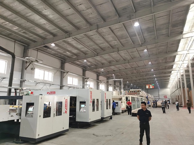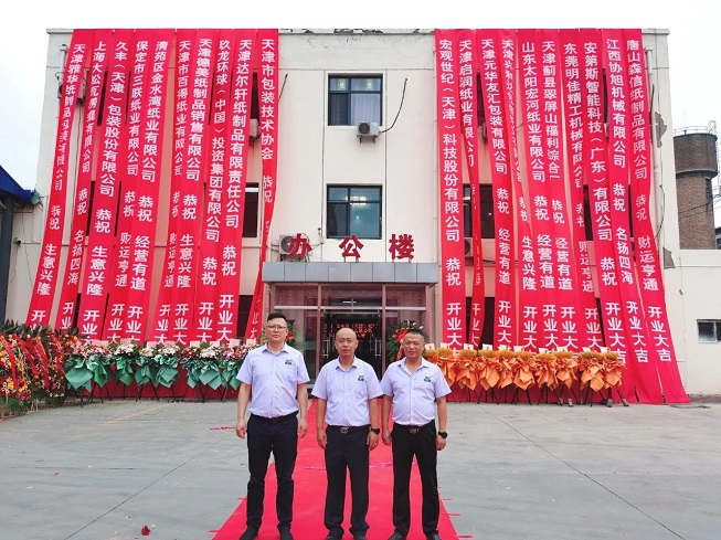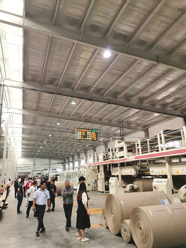 高建軍董事長(zhǎng)、鄭強(qiáng)總經(jīng)理、李宏山監(jiān)事長(zhǎng)三位股東進(jìn)行拜財(cái)神儀式 宏豐達(dá)(天津)紙制品包裝有限公司成立于2020年11月26日,注冊(cè)資金1000萬(wàn)元,位于天津武清區(qū)電子產(chǎn)業(yè)園大堿廠分園,占地面積27000平方米,建筑面積20000平方米,專(zhuān)業(yè)生產(chǎn)和銷(xiāo)售瓦楞紙板,預(yù)計(jì)月產(chǎn)能近1600萬(wàn)平方米,年產(chǎn)值超5億元。 當(dāng)天上午,由于疫情關(guān)系,與會(huì)嘉賓分批次走進(jìn)宏豐達(dá)(天津)紙制品包裝有限公司生產(chǎn)車(chē)間,參觀了2.5米江西協(xié)旭濕部+廣東安第斯干部組成的高速智能五層瓦楞紙板生產(chǎn)線,配備的是明佳接紙機(jī)、鼎邦溫控、永進(jìn)物流、大松瓦楞輥、太詮制膠機(jī)等配套設(shè)施,以及東莞佳藝2.5米單面瓦楞紙板生產(chǎn)線。