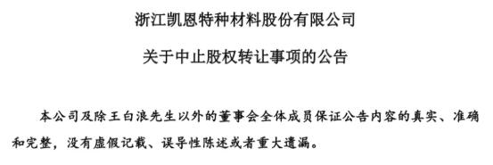 10月21日晚間,凱恩股份公告,近日已無法與董事王白浪取得聯系。