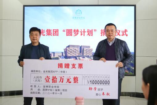 金光集團(tuán)APP向淄博職業(yè)學(xué)院捐贈(zèng)10萬(wàn)元,用于“圓夢(mèng)計(jì)劃”在淄項(xiàng)目運(yùn)營(yíng) 開學(xué)典禮現(xiàn)場(chǎng)還舉行了“圓夢(mèng)計(jì)劃”運(yùn)營(yíng)管理費(fèi)捐贈(zèng)儀式,金光集團(tuán)APP向淄博職業(yè)學(xué)院捐贈(zèng)10萬(wàn)元,用于“圓夢(mèng)計(jì)劃”在淄項(xiàng)目運(yùn)營(yíng)。