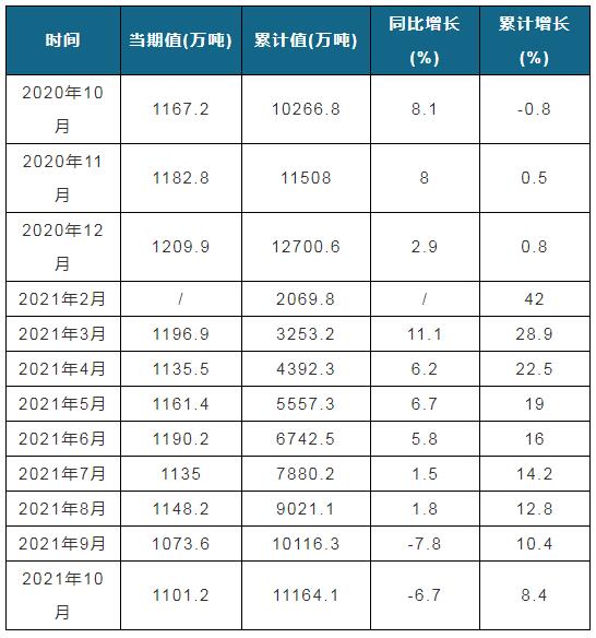 從9月下旬開始,一場由限電停產引起的漲價潮席卷包裝產業,原紙的價格每周都在漲,喧鬧的漲價風波讓人以為回到了2017年。 漲價潮來得急去的也很快。進入11月中旬,原紙行情重新遇冷并連續降價。但需要注意的是,直到現在紙價相比漲價前仍高出數百元,而中下游紙箱、紙板價格卻已經向漲價前看齊了。 限電、減產帶來的恐慌情緒是漲價的主要原因,問題來了,9月、10月到底紙的產量減產了多少?正好國家統計局的數據出來了,我們來簡單扒一扒。 據國家統計局最新數據顯示,2021年10月我國機制紙及紙板(外購原紙加工除外)產量為1101.2萬噸,同比下降6.7%;2021年1-10月機制紙及紙板(外購原紙加工除外)累計產量為11164.1萬噸,同比增長8.4%。 2021年9月我國機制紙及紙板(外購原紙加工除外)產量為1073.6萬噸,同比下降7.8%;2021年1-9月機制紙及紙板(外購原紙加工除外)累計產量為10116.3萬噸,同比增長10.4%。 2020-2021年1-10月我國機制紙及紙板產量及同比增長情況