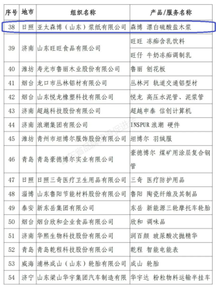 12月20日,山東省品牌建設促進會公布了《關于公示2021年山東知名品牌擬認定名單的公告》,公示2021年山東知名品牌認定名單。亞太森博(山東)漿紙有限公司的“森博”木漿品牌入選該名單。