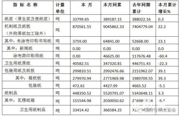 福建省造紙工業(yè)2021年11月份產(chǎn)品累計產(chǎn)量表