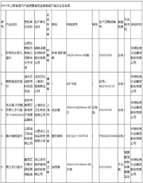 據(jù)江西省市場監(jiān)督管理局網(wǎng)站2021年12月31日消息,2021年,江西省市場監(jiān)督管理局對全省濕巾產(chǎn)品質(zhì)量進(jìn)行了監(jiān)督抽查。本次抽查了10批次濕巾產(chǎn)品,經(jīng)檢驗(yàn),不合格產(chǎn)品1批次,不合格發(fā)現(xiàn)率為10%。