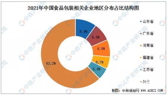 從我國食品包裝行業(yè)產(chǎn)業(yè)鏈企業(yè)區(qū)域分布來看,行業(yè)企業(yè)在全國絕大多數(shù)省份均有分布,其中山東省食品包裝企業(yè)數(shù)量分布最多,為34921家,占比9.9%;同時廣東、安徽等省份企業(yè)數(shù)量也相對集中,分別為8.5%和8%。