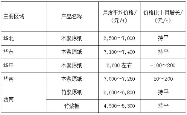 華中、華南地區(qū)由于運(yùn)輸成本提升、木漿價(jià)格上漲等因素影響,使部分企業(yè)原紙價(jià)格上漲,但成品紙價(jià)格仍保持與2021年12月持平。