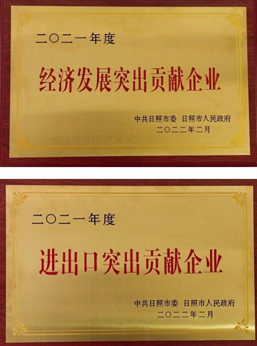 2月24日,日照市“創新興市”動員大會召開,對2021年度高質量發展企業進行表揚通報,公司榮獲“經濟發展突出貢獻企業”、“進出口突出貢獻企業”兩項榮譽。