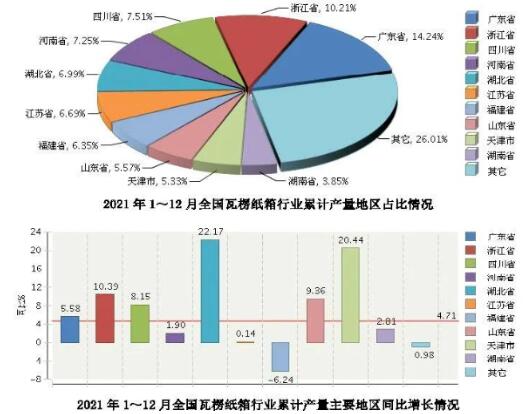 瓦楞紙箱產量3444萬噸 在2021年的7739.06萬噸紙制品產量中,全國瓦楞紙箱累計產量為3444.24萬噸,同比增長4.71%。