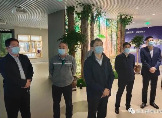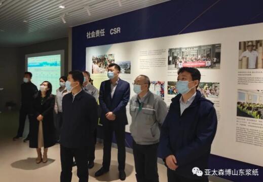 3月25日下午,日照市委常委、組織部長郭飛到亞太森博調研,日照市工信局黨組書記、局長馬先升,日照經開區工委委員、黨群工作部部長王磊,日照綜保區管理服務中心副主任、日照經開區經濟發展局黨委書記、局長毛欣,公司管理層陳小榮、王偉國、李潤明陪同活動。