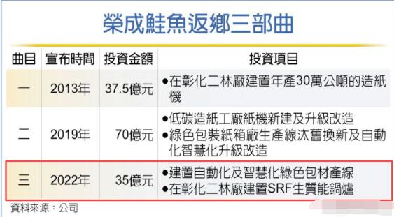 順帶一提,榮成紙業早前還宣布,將繼續響應政府政策,擴大回臺投資,未來三年將投下35億元(新臺幣),建置自動化及智慧化綠色包裝產線、以及SRF生質能鍋爐,以呼應環保永續的產業大趨勢。
