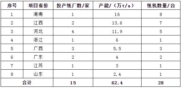 ●泰盛在江西基地投產4臺輕良的新月型紙機,合計產能8萬t/a;