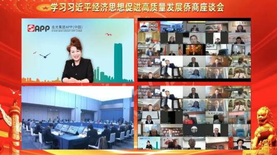 中國僑聯黨組書記、主席萬立駿 (左上視頻) 金光集團APP(中國)副總裁翟京麗女士代表金光集團董事長兼總裁黃志源先生,受邀全程視頻連線出席,并做主題發言。 結合企業實踐,翟總就學習習近平經濟思想的心得體會時說道:“對廣大僑商僑企而言,深入貫徹與落實習近平經濟思想,不僅是增強政治凝聚力的根本遵循,更是我們做好新時代經濟工作、推動企業穩健發展的行動指南。”