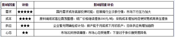 導語:4月原料紙漿價格高位波動,支撐紙廠價格繼續提漲300元/噸,貿易商成本增加并試探拉漲。但國內需求疲軟,整體供大于求,市場漲價落實幅度不及預期。 4月白卡紙市場走勢小幅震蕩,月均價整體較上月小幅上行。至4月29日,250-400g平張白卡紙市場成交含稅月均價6428元/噸,較上月漲1.16%,較去年同期下跌34.45%。上旬市場觀望占主流,內需疲軟制約業者調價心態,紙價波動不大;中旬市場試探拉漲,下游剛需補貨帶動成交重心上移;隨著市場出貨及資金周轉壓力提升,下旬局部地區價格開始回落。 不同區域走勢略有差異。廣東市場拉漲不利后于下旬率先向下調整,由國內高價區回落至正常區間;江浙滬地區受物流運輸制約性較大,市場有價無市現象較明顯;其他主要區域包含山東在內,市場價格緩慢拉漲后進入僵持整理狀態。 內需疲軟,市場整體供大于求 國內市場訂單清淡,跨區域流通尚未完全恢復,下游采購意愿減弱。作為重要消費市場的長三角地區,上海市場活躍度降低,對周邊區域的輻射影響較大,電子信息等重要產業供應鏈不暢通,對白卡紙包材需求明顯減弱。珠三角市場需求亦顯疲軟,部分業者反饋下游印刷及包裝廠訂單量本月訂單減量2-3成或以上。供應端,本月個別企業有檢修情況,多數維持正常開工,在出口訂單的支撐下,庫存尚維持在正常區間。經銷商備貨積極性一般,但隨著前期補貨到倉以及出貨減緩,庫存量總體有一定增加。 成本增加是市場上行主要支撐 上游原料木漿價格高位震蕩調整,紙廠4月價格提漲300元/噸,貿易商在成本壓力下試探拉漲。從木漿價格來看,4月化機漿月均價5458元/噸,環比漲幅3.06%;闊葉漿月均價6033元/噸,環比下降1.15%左右,針葉漿月均價7094元/噸,環比漲1.32%。海外依利姆漿廠檢修,木漿外盤上揚,以及期貨震蕩波動等是影響漿市的主要因素。整體來看,白卡紙漿料成本較上月雖小幅增加1.3%,但目前仍處于高位,且高于去年同期近14個百分點。