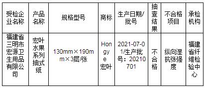 表2福建省紙巾紙產品質量省級監督抽查結果(不合格)