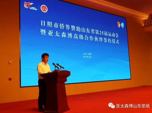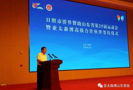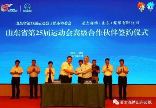 6月17日上午,日照市僑界贊助山東省第25屆運(yùn)動(dòng)會(huì)暨亞太森博高級(jí)合作伙伴簽約儀式隆重舉行。亞太森博(山東)漿紙有限公司向山東省第25屆運(yùn)動(dòng)會(huì)日照市籌備工作委員會(huì)贊助800萬(wàn)元人民幣。
