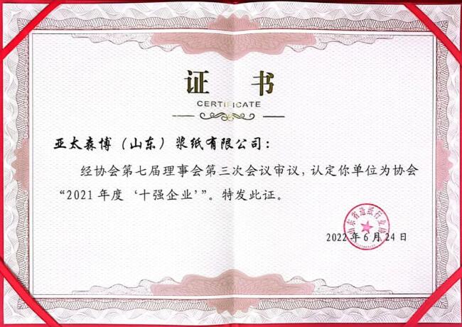 公司依托良好的生產(chǎn)經(jīng)營(yíng)、安全環(huán)保、精益管理和社會(huì)責(zé)任績(jī)效,已經(jīng)連續(xù)多年被認(rèn)定為山東省造紙行業(yè)“十強(qiáng)企業(yè)”。公司還被評(píng)為國家級(jí)綠色工廠、中國優(yōu)秀企業(yè)公民、中國造紙工業(yè)環(huán)境友好企業(yè)、中國社會(huì)責(zé)任典范企業(yè)、全國優(yōu)秀外商投資企業(yè)、高新技術(shù)企業(yè)、山東省節(jié)能先進(jìn)企業(yè)、山東省循環(huán)經(jīng)濟(jì)示范企業(yè)。