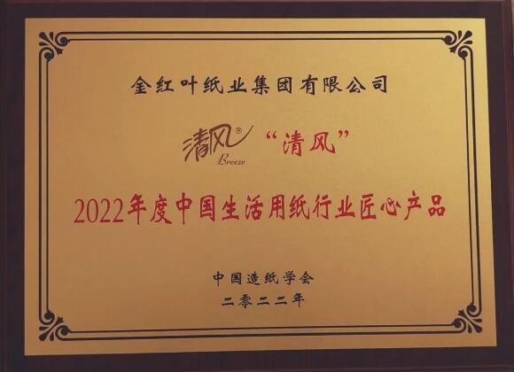2022年7月28日,在第29屆生活用紙國際科技展覽會頒獎暨“匠心產品”榜單發布會上,生活用紙行業領導品牌——金光集團APP(中國)旗下金紅葉紙業「清風」,榮獲“2022年度中國生活用紙行業匠心產品獎”。