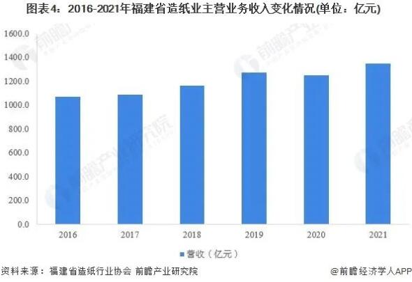 從行業經營效益來看,2016年以來,福建省造紙業主營收入呈現平穩增長的變化趨勢,2020年,全省造紙業實現營收1246.3億元。到2021年,福建省造紙工業全年全行業1347.58億元,同比增長8.0%。
