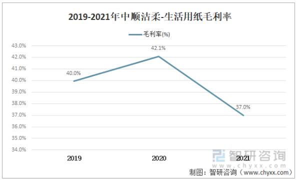 資料來源:公司年報、智研咨詢整理 中順潔柔紙業(yè)股份有限公司,是國內(nèi)首批A股上市的生活用紙企業(yè)。近三年中順潔柔-生活用紙呈倒“v”走勢,其中2021年中順潔柔-生活用紙毛利率37%。 2019-2021年中順潔柔-生活用紙毛利率