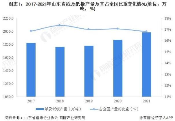 山東造紙業產量再創新高 山東省造紙行業牢牢把握穩中求進的工作總基調,克服諸多困難和約束,著力抓好提質降耗,推進結構調整,強化市場攻堅,實施新產品研發和技術創新,保持了山東省造紙產業經濟規模連續二十多年居全國前茅的領先地位。 據山東省造紙行業協會統計數據顯示,2017年以來,山東省造紙行業主要產品產量呈現先降后升的發展態勢,到2020年,山東省全年生產紙及紙板產品1920萬噸,產量規模再創新高,總產量僅次于廣東。2021年,山東紙及紙板產量為2035萬噸,產量同比增長5.99%,再次實現對廣東的反超,成為我國紙及紙板產量第一的地區。 作為造紙大省,山東省造紙業在全國造紙行業的地位始終穩居全國前列,2017年以來,山東紙及紙板產量占比保持震蕩上行的走勢,到2021年,山東紙及紙板產量占全國紙及紙板產品總產量的16.8%。