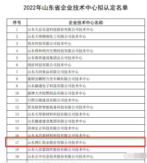 為深入貫徹落實(shí)省委、省政府創(chuàng)新型省份建設(shè)的決策部署,根據(jù)《山東省企業(yè)技術(shù)中心認(rèn)定管理辦法(2021年修訂)》(魯發(fā)改高技〔2021〕428號(hào)),山東省發(fā)展和改革委員會(huì)于2022年6月份組織開展了2022年山東省企業(yè)技術(shù)中心認(rèn)定工作。近日,山東省發(fā)展和改革委員會(huì)公布了2022年山東省認(rèn)定企業(yè)技術(shù)中心名單,山東博匯紙業(yè)股份有限公司成功入選。