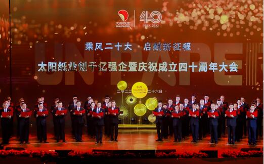 李洪信董事長(zhǎng)表示,回望奮斗歷程,太陽(yáng)紙業(yè)有三個(gè)“必須堅(jiān)持”的關(guān)鍵經(jīng)驗(yàn):必須堅(jiān)持聽(tīng)黨話、跟黨走。沒(méi)有黨的改革開(kāi)放,就沒(méi)有太陽(yáng)紙業(yè)的發(fā)展;沒(méi)有黨和政府的支持,就沒(méi)有太陽(yáng)紙業(yè)的輝煌。必須堅(jiān)持為員工、為社會(huì)。讓大伙過(guò)上好日子,走好共同富裕的路子,這是建廠時(shí)的初衷,更是太陽(yáng)紙業(yè)使命的精神實(shí)質(zhì)。必須堅(jiān)持做實(shí)業(yè)、做主業(yè)。踏踏實(shí)實(shí)辦好主業(yè)、心無(wú)旁騖改革創(chuàng)新是公司發(fā)展永恒的主題。公司全體干部職工要把黨的二十大精神轉(zhuǎn)化為干事創(chuàng)業(yè)的強(qiáng)大動(dòng)力,永葆艱苦奮斗的初心本色,堅(jiān)定創(chuàng)建千億強(qiáng)企發(fā)展信心,以勇?tīng)?zhēng)一流的格局向高而攀,以創(chuàng)新求變的作為迎新而生,以責(zé)任擔(dān)當(dāng)?shù)那閼阎逻h(yuǎn)而行!中國(guó)式現(xiàn)代化一定有太陽(yáng)的力量! 李洪信董事長(zhǎng)指出,展望未來(lái),太陽(yáng)紙業(yè)將堅(jiān)定不移地走好高質(zhì)量發(fā)展之路;堅(jiān)定不移地落實(shí)創(chuàng)新驅(qū)動(dòng)發(fā)展戰(zhàn)略;堅(jiān)定不移地融入雙循環(huán)發(fā)展新格局;堅(jiān)定不移地推進(jìn)共同富裕,更好地實(shí)現(xiàn)“發(fā)展為了員工,發(fā)展依靠員工、發(fā)展成果由全體員工共享”;堅(jiān)定不移地推動(dòng)綠色發(fā)展,促進(jìn)人與自然和諧共生;堅(jiān)定不移地踐行社會(huì)責(zé)任;堅(jiān)定不移地踐行太陽(yáng)文化,弘揚(yáng)企業(yè)家精神,凝聚磅礴精神力量,為中國(guó)造紙產(chǎn)業(yè)綠色低碳高質(zhì)量發(fā)展、為開(kāi)創(chuàng)濟(jì)寧爭(zhēng)先進(jìn)位和高質(zhì)量發(fā)展新局面做出新的、更大貢獻(xiàn)!