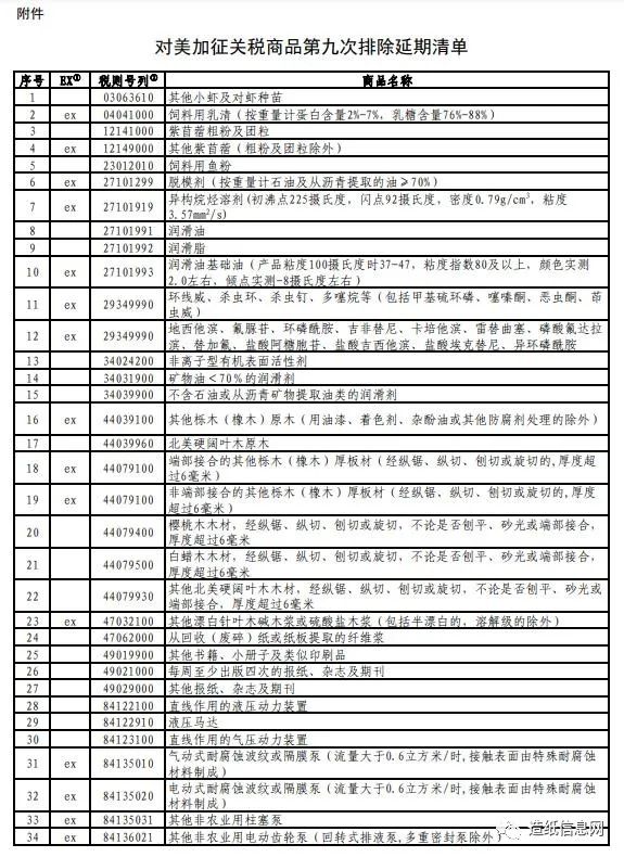 根據《國務院關稅稅則委員會關于對美加征關稅商品第七次排除延期清單的公告》(稅委會公告2022年第4號),對美加征關稅商品第七次排除延期清單將于2022年11月30日到期。國務院關稅稅則委員會按程序決定,對相關商品延長排除期限。現將有關事項公告如下: