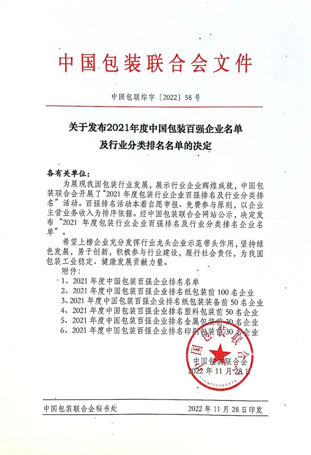 2021年度中國包裝百強企業排名:紙包裝企業前100強