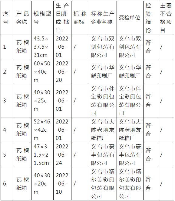 2022年義烏市瓦楞紙箱產品監督抽查結果