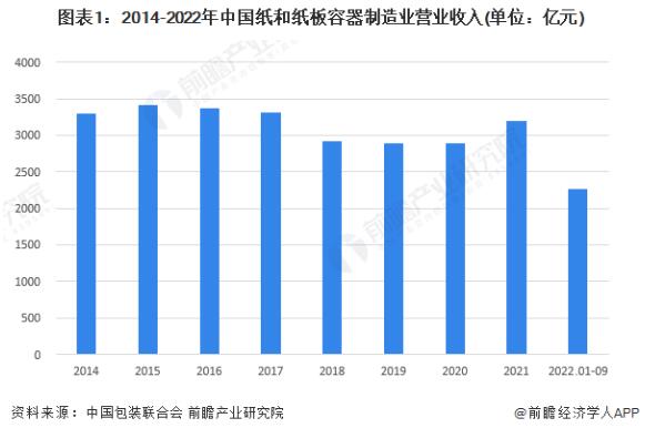 隨著我國紙制品包裝行業產業結構調整的深入,2015年之后,我國紙制品包裝行業規模呈現下降趨勢。2021年,我國紙和紙板容器制造業完成累計收入3192.03億元,同比增長13.56%,結束了連續幾年下降的勢頭。2022年前三季度,中國紙和紙板容器制造業營業收入達到2271.27億元,同比略微減少1.27%。