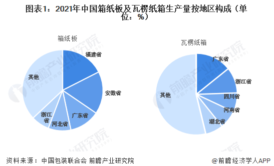 紙制品包裝區(qū)域總體發(fā)展分析 我國東部沿海地區(qū)在紙制品包裝工業(yè)領(lǐng)域也處于絕對領(lǐng)先地位。據(jù)中國包裝聯(lián)合會統(tǒng)計數(shù)據(jù)顯示,2021年,我國主要紙制品包裝產(chǎn)品產(chǎn)量前五地區(qū)大部分位于東部沿海,其中箱紙板產(chǎn)量排在前五位的地區(qū)依次是福建省、安徽省、廣東省、河北省以及浙江省,五省箱紙板合計產(chǎn)量占全國產(chǎn)量的63.03%;瓦楞紙箱產(chǎn)量排在前五位的地區(qū)依次是廣東省、浙江省、四川省、河南省以及湖北省,五省瓦楞紙箱產(chǎn)量合計占全國產(chǎn)量的46.20%。
