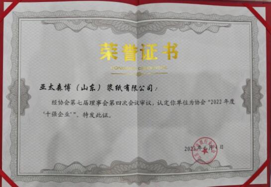 公司依托良好的生產經營、安全環保、精益管理和社會責任績效,已經連續多年被認定為山東省造紙行業“十強企業”。公司還被評為國家高新技術企業、國家綠色工廠、國家知識產權優勢企業、中國造紙工業環境友好企業、中國社會責任典范企業、全國優秀外商投資企業、山東省技術創新示范企業、山東省節能先進企業、山東省循環經濟示范企業、山東省制造業高端品牌培育企業。作為制漿造紙行業產業升級、技術進步、綠色發展的標桿,公司始終堅持以質量為立身之本,以科技創新為引擎,在“保護環境,為客戶創造價值,實現利民、利國、利業”理念的指引下,實現企業綠色高質量發展。