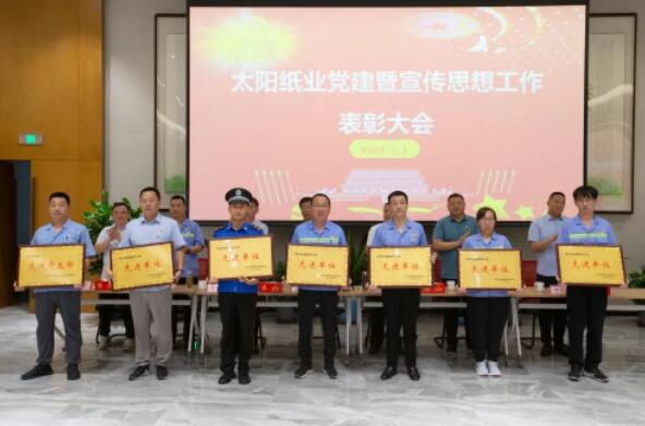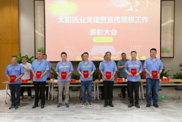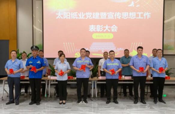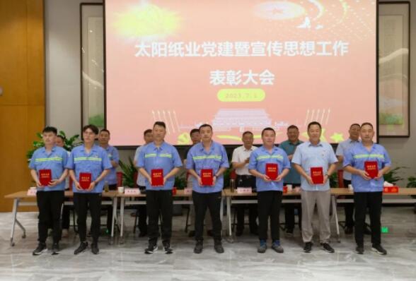 7月1日,山東太陽(yáng)紙業(yè)股份有限公司黨委組織召開(kāi)了黨建暨宣傳思想工作大會(huì),熱烈慶祝中國(guó)共產(chǎn)黨成立102周年,隆重表彰2022年—2023年太陽(yáng)紙業(yè)在黨建和宣傳戰(zhàn)線中涌現(xiàn)出的先進(jìn)單位和個(gè)人。公司黨委副書(shū)記、副總經(jīng)理應(yīng)廣東,公司黨委紀(jì)委書(shū)記、組織委員、機(jī)關(guān)黨支部書(shū)記、副總經(jīng)理陳昭軍,公司黨委委員、宣傳委員、副總經(jīng)理王宗良,公司副總經(jīng)理龐福成,公司各黨支部書(shū)記代表張文東、邵作運(yùn)、吳文春,及各黨團(tuán)支部代表、宣傳骨干代表參會(huì)。