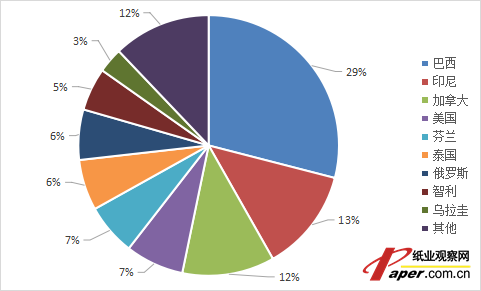 2023年5月紙漿進(jìn)口國(guó)占比情況