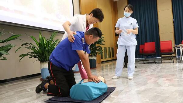 開班儀式結(jié)束,進入培訓(xùn)環(huán)節(jié),首先由協(xié)作醫(yī)療單位愛之家醫(yī)院江主任進行《創(chuàng)傷緊急急救》《心肺復(fù)蘇》《防中暑知識》的授課,培訓(xùn)采用理論和實操相結(jié)合的方式開展,現(xiàn)場員工積極參與了現(xiàn)場實操,江主任進行了指導(dǎo)和講解。