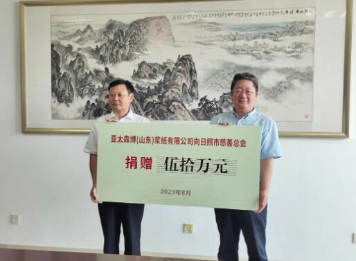 8月14日,日照市慈善總會舉行亞太森博(山東)漿紙有限公司捐贈儀式。本次公司捐贈50萬元支持“日照市優生優育救助項目”, 為全市婦女兒童的健康保駕護航。另外,為表彰公司多年來在公益慈善領域的卓越表現,市慈善總會授予公司“慈善功德企業”榮譽。