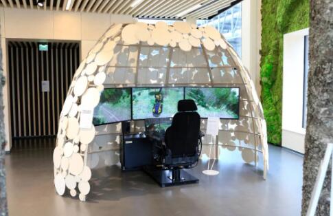 模擬樹木采伐互動裝置 在Pro Nemus訪客中心,復雜的流程以極具視覺吸引力且易于掌握的方式呈現在訪客面前。哈馬雷解釋道,這大大增加了工廠參觀的價值。 在參觀過程中,我們展示生產運營的機會總是有限的。出于安全考慮,大部分生產流程發生在禁止游客進入的區域。從Pro Nemus訪客中心開始參觀,讓他們對流程有了清晰的了解,使實地參觀工廠接收的信息更加豐富。 哈馬雷表示,Pro Nemus訪客中心已收到了客戶的積極反饋,特別是對工業生態系統的反饋。該系統在一體化工廠廠區引入了生物制品廠和其他運營商。訪客對采伐機模擬器和拍照亭也贊不絕口。