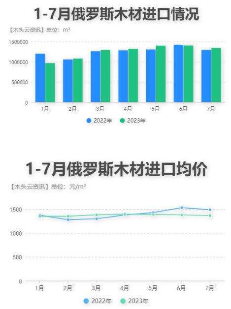 俄羅斯木材商一直在等待中國市場恢復,今年除了7月之外,中國從俄羅斯進口的木材量一直在逐月增長,不過自4月起,進口均價開始出現小幅下跌。據西北地區的木材商反映,今年8月,上海的云杉木材價格從每立方米185-190美元上漲到230美元。目前等待俄羅斯的木材運輸完成優化后,運輸成本和木材價格應該也會隨之下降。