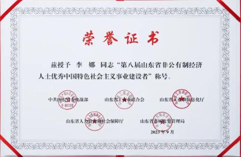 “省優(yōu)秀建設(shè)者榮譽不僅是砥礪奮進的動力,更是一份沉甸甸的責(zé)任。”李娜表示,自己將以實際行動積極響應(yīng)《第八屆山東省非公有制經(jīng)濟人士優(yōu)秀中國特色社會主義事業(yè)建設(shè)者倡議書》號召,堅持以習(xí)近平新時代中國特色社會主義思想為指導(dǎo),在省委、省政府的堅強領(lǐng)導(dǎo)下,錨定“走在前、開新局”,堅定理想信念,堅持守法經(jīng)營,堅持卓越追求,堅守社會責(zé)任,為加快新時代社會主義現(xiàn)代化強省建設(shè)作出新的更大貢獻!