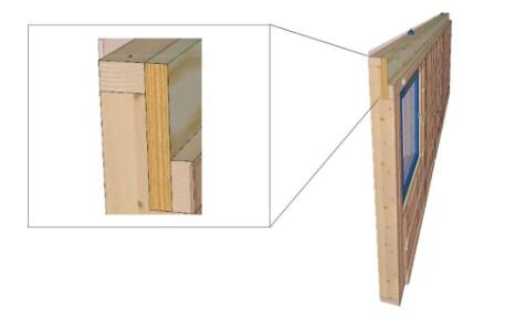 注釋:對于落地窗,房間高度和窗戶高度之間的微小差異為過梁提供的空間極其有限。十厘米長的窗過梁采用Kerto LVL制作可節省材料和空間。